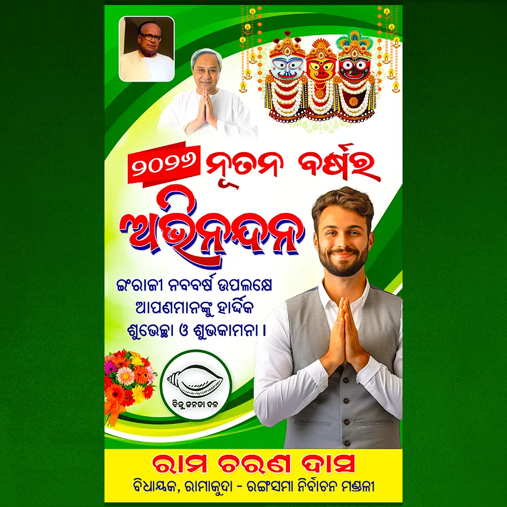 In this post I will share with you 5 New Year Bjd Banner PSD 2026. these bundle includes with 3 bjp banner and 2 bjd standee banner psd and also these files are fully Editable using any version of Photoshop and Akruti.